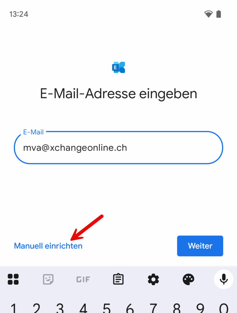 Ergänzen Sie Ihre E-Mail und tippen Sie auf Manuell einrichten.