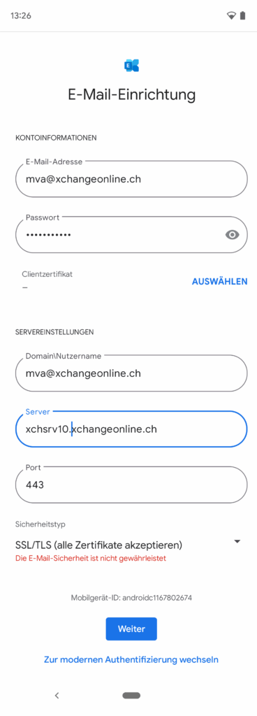 Android (ab Version 12) mit Gmail-App an MvA Hosted Exchange anbinden
