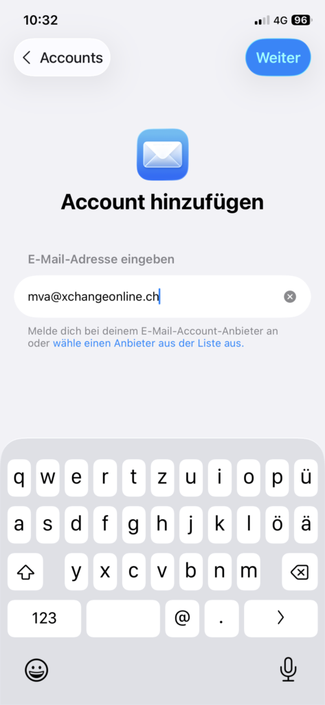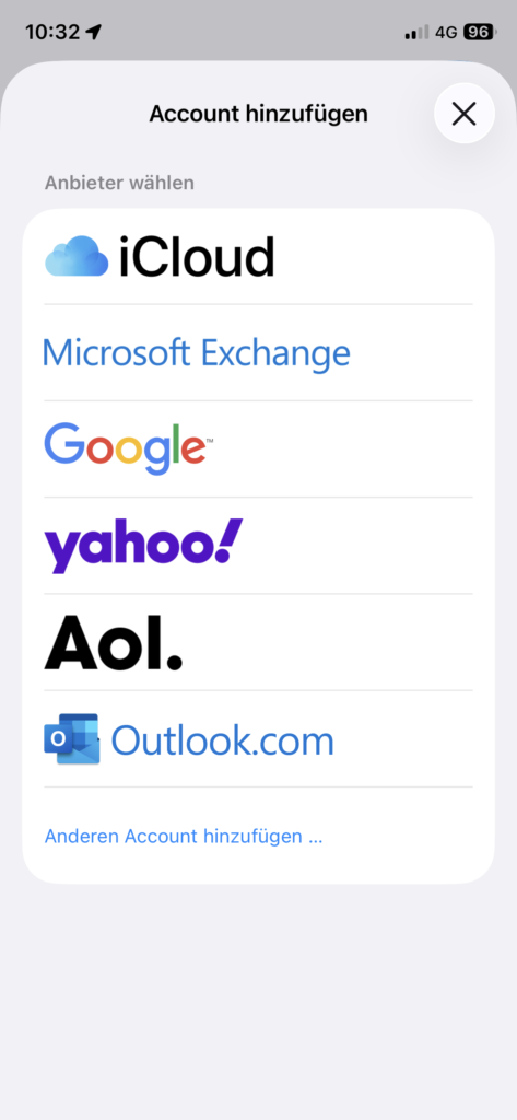 Wählen Sie anschliessend Mail-Accounts, danach Account hinzufügen.