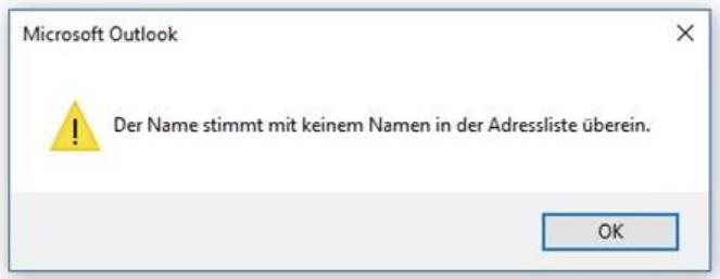 Fehlermeldung: The name cannot be matched to a name in the address list.