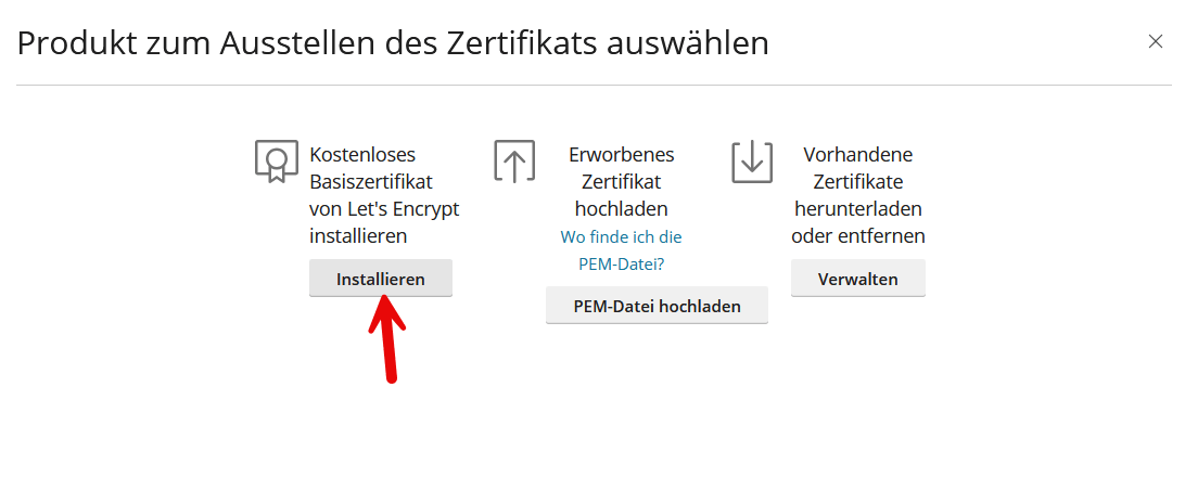 Plesk 18: Wählen Sie Zertifikat erneut ausstellen, danach …